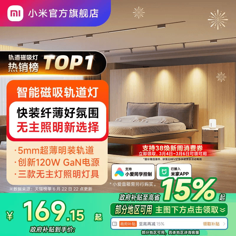 磁吸轨道灯嵌入式无主灯客厅照明泛光灯磁吸灯已接入米家APP智能
