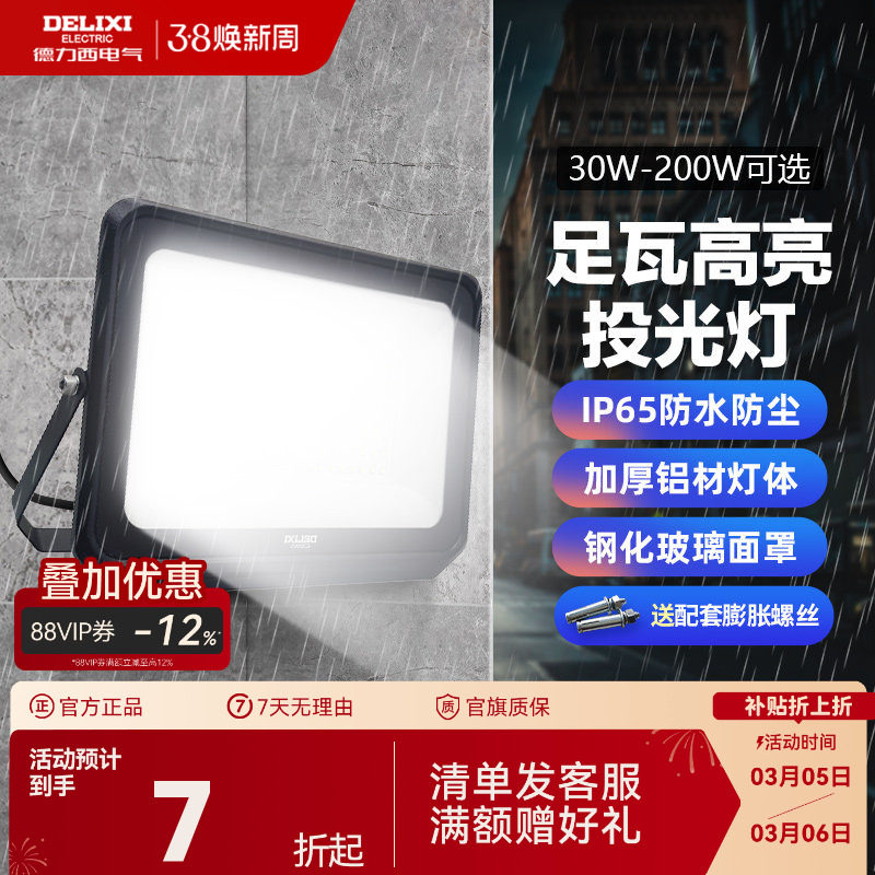 德力西LED户外照明灯探照投光灯室外厂房泛光灯防水工程工地射灯