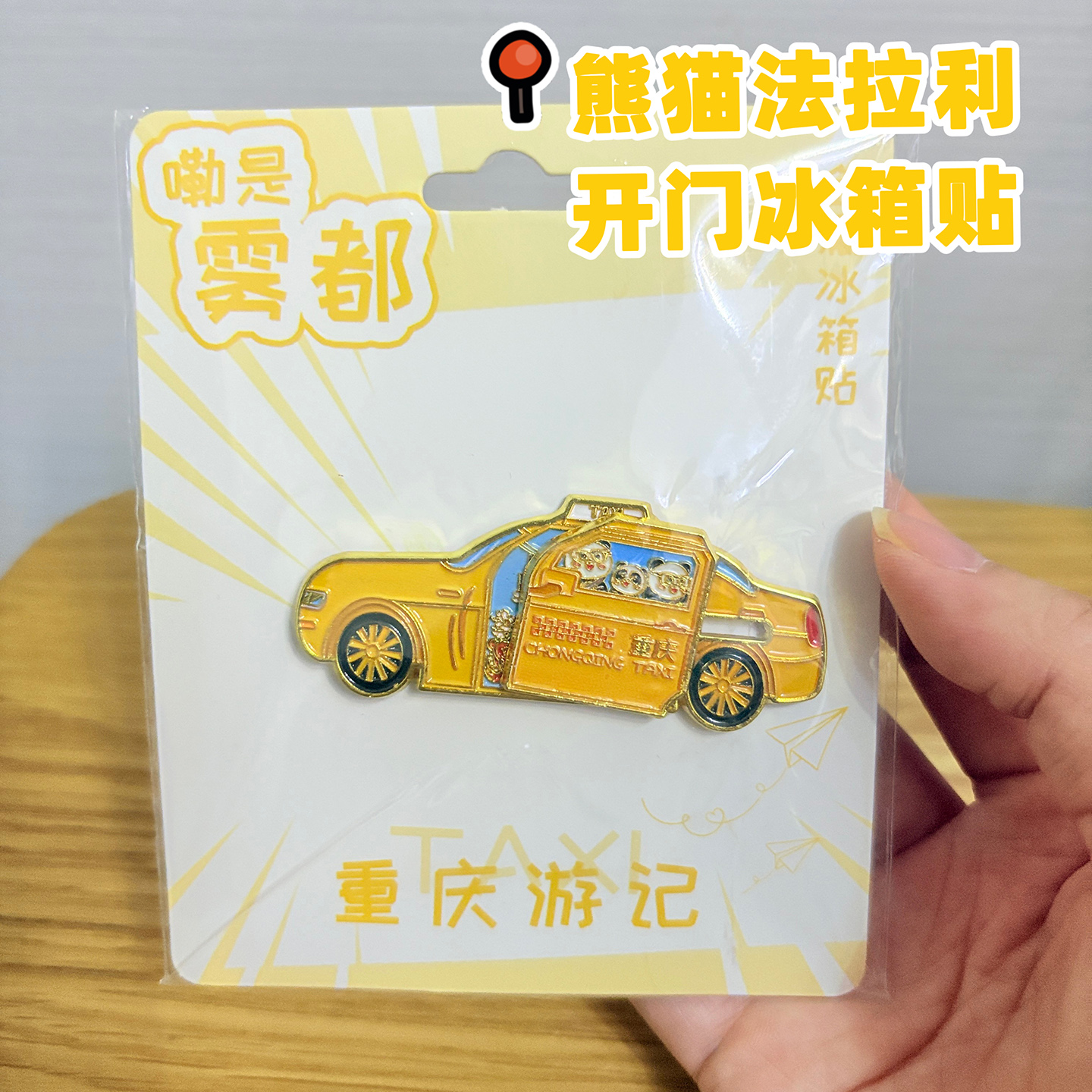 重庆黄色法拉利网红出租车可滑动熊猫金属冰箱贴旅游文创纪念礼品