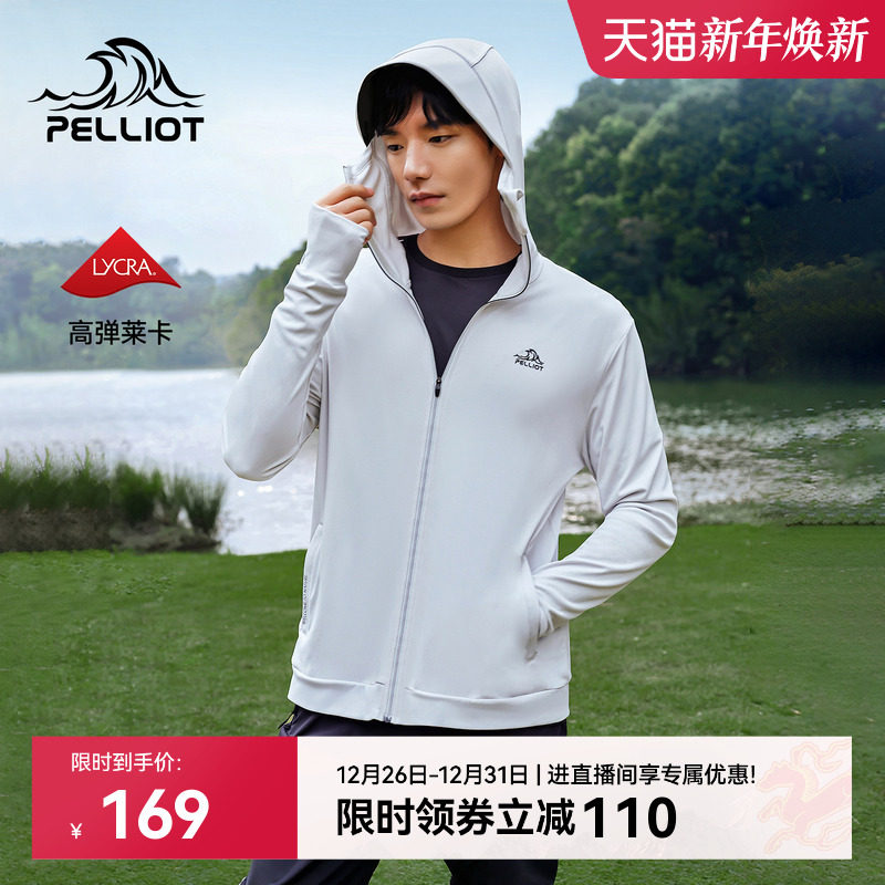 伯希和户外皮肤衣男士夏季轻薄凉感防晒服黑胶高弹透气钓鱼防晒衣