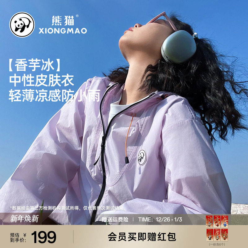 熊猫户外皮肤衣女士2025新款夏季透气百搭防紫外线连帽轻量化外套