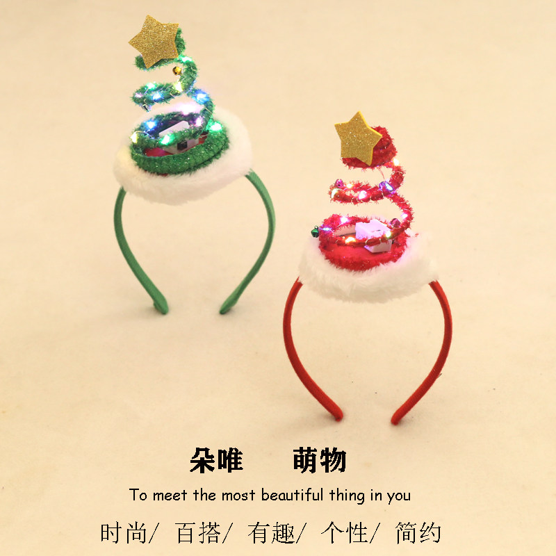 圣诞节发光头饰可爱圣诞树帽子鹿角发箍发卡节日派对装扮头箍发夹
