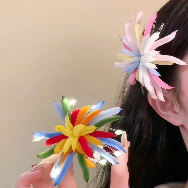 【好米好仙】烟花扭扭棒发夹多巴胺配色发光头饰新年氛围感侧边夹