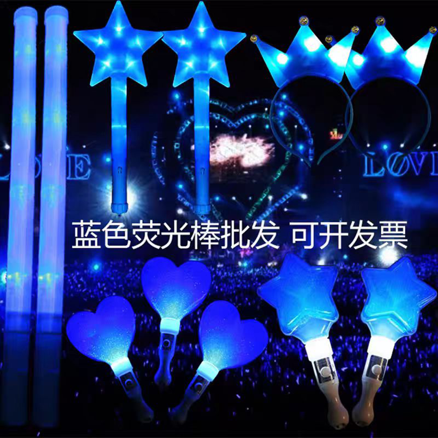 荧光棒定制演唱会蓝色星星应援道具发光头饰头箍应援棒银光棒批发