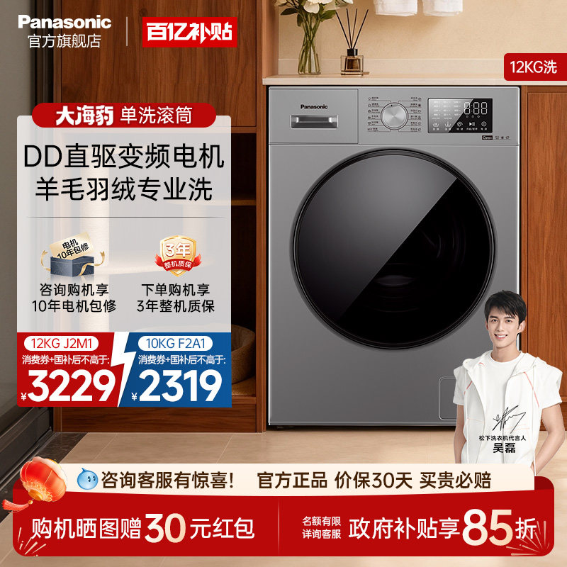 松下大海豹12kg大容量洗衣机全自动家用直驱变频滚筒除菌除螨J2M1
