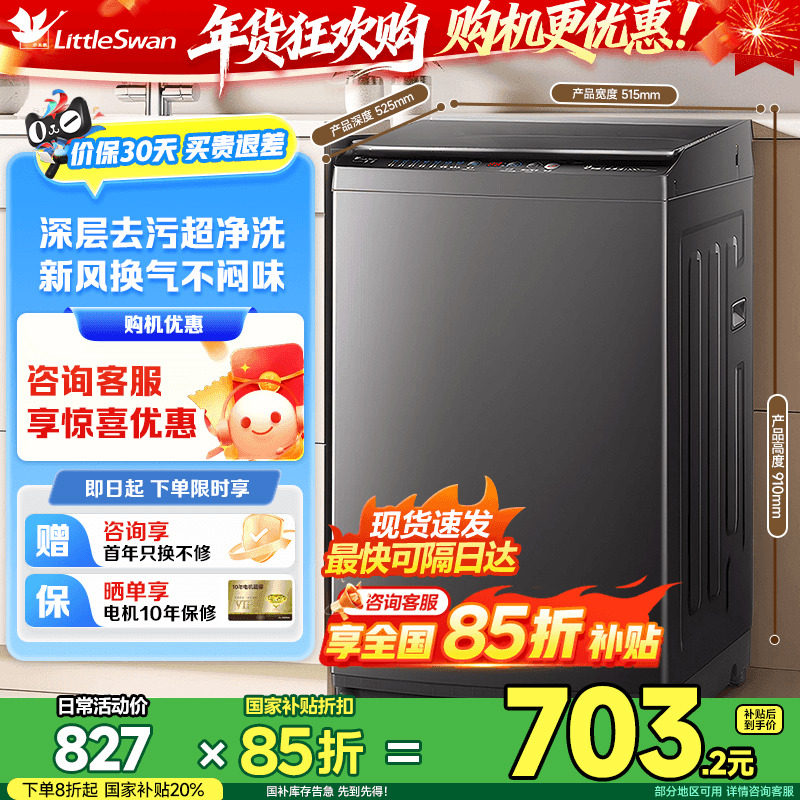 [纯净]小天鹅洗衣机8/10KG全自动波轮租房宿舍家用大容量洗衣机