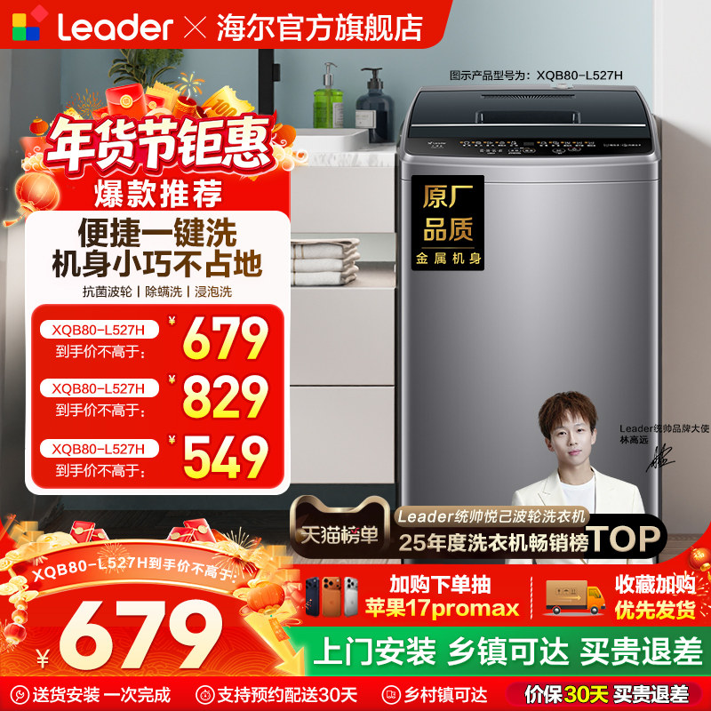 换新补贴海尔出品统帅8/10kg大容量家用全自动抗菌波轮洗衣机527