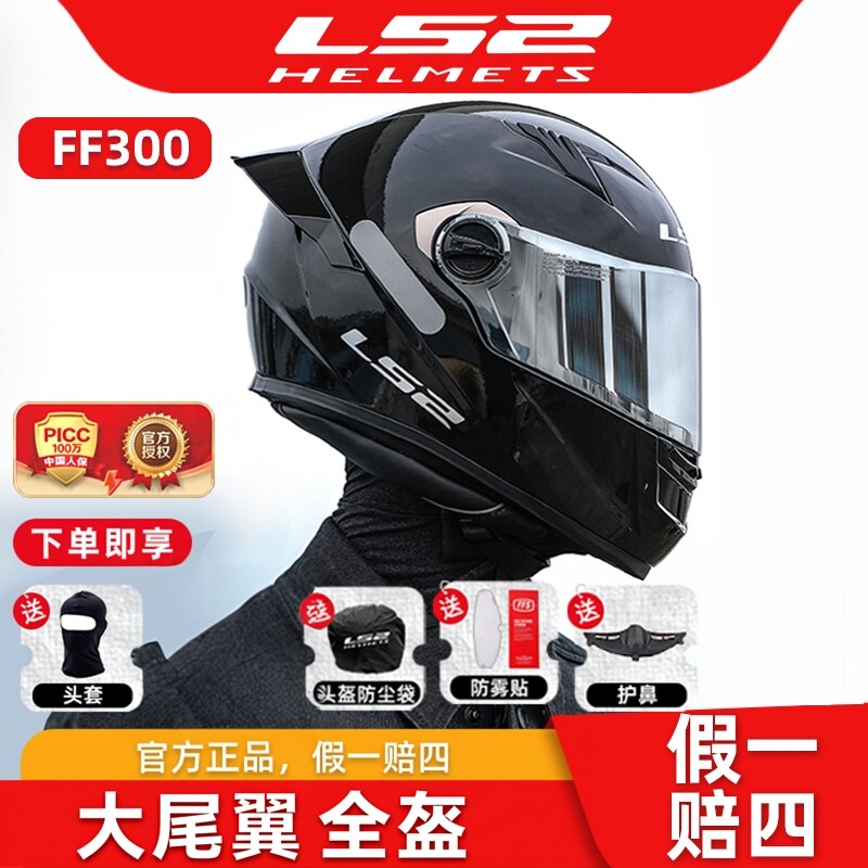 LS2摩托车头盔男女机车全覆式四季通用防雾单镜片蓝牙FF300