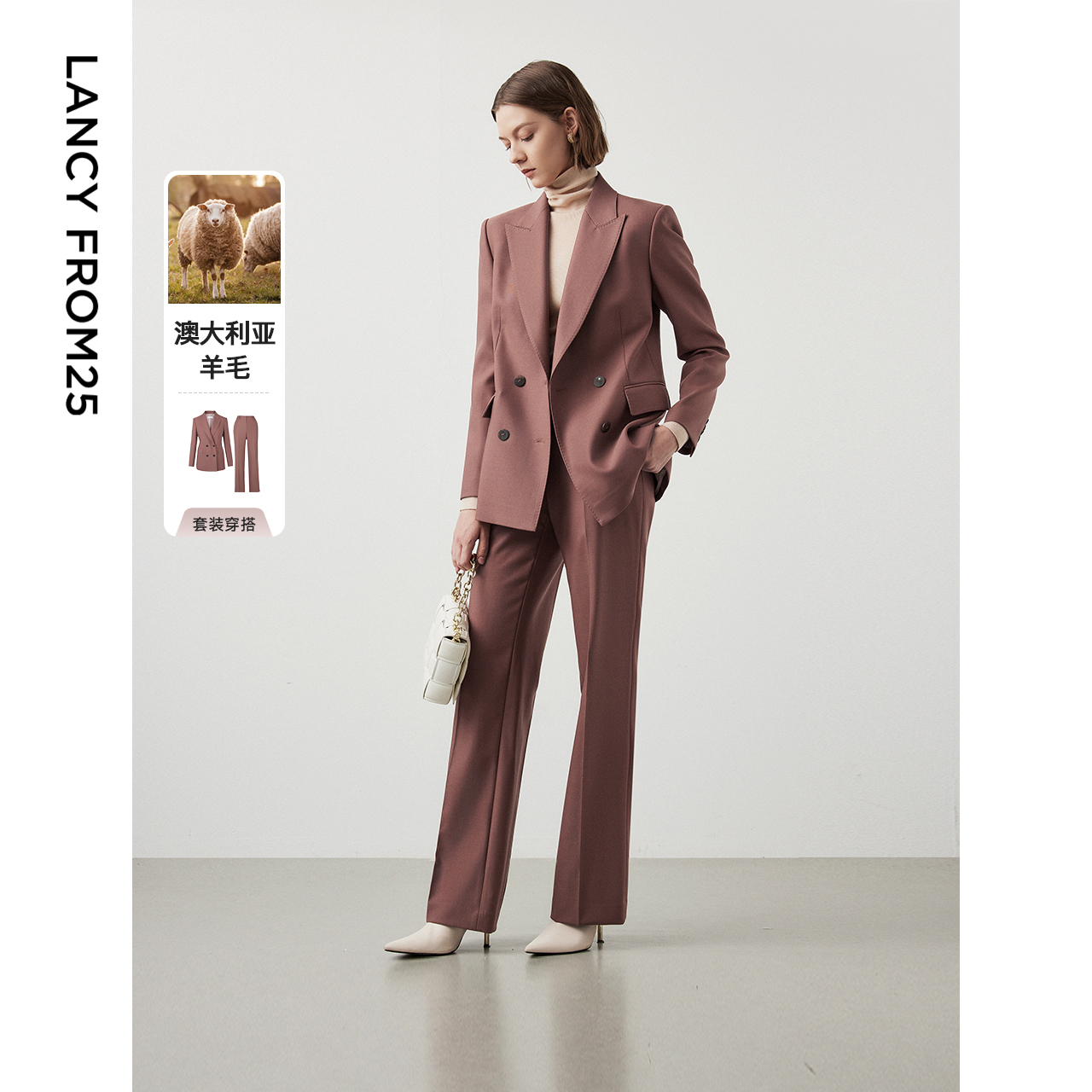 朗姿纯羊毛复古高级感通勤西装上衣法式气质西服外套女士冬季新款