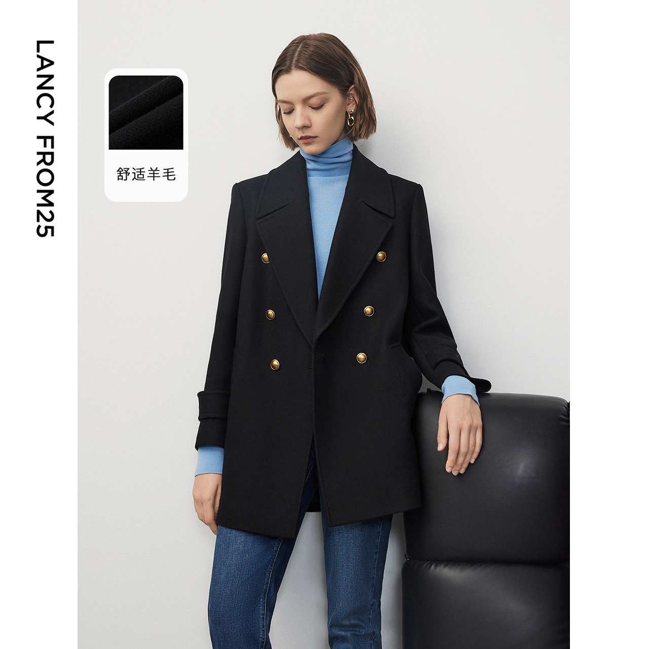 朗姿羊毛法式复古高级感西装领毛呢外套女士通勤气质上衣冬季新款