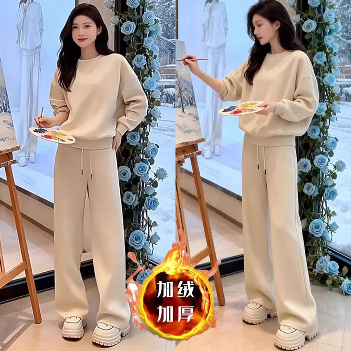 大码加绒加厚卫衣套装女冬季2026新款时尚洋气减龄休闲运动两件套