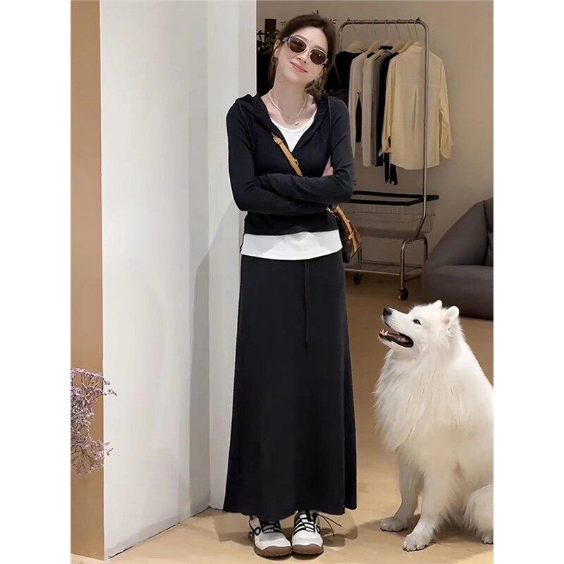 大码运动休闲套装女秋季新款假两件上衣胖MM遮肚显瘦半身裙两件套