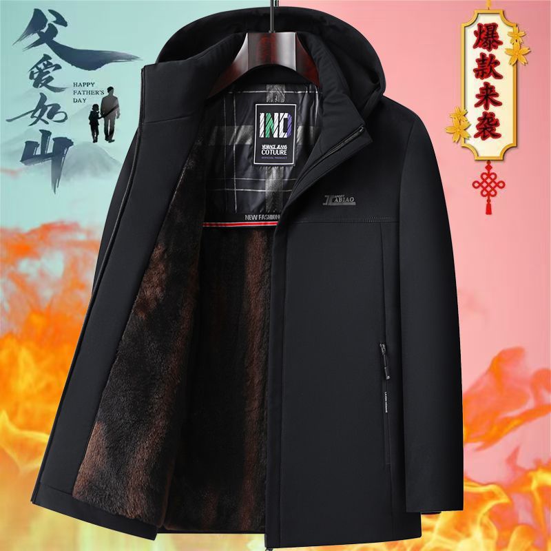 冬季男士棉衣中老年外套中年羽绒棉服男加绒加厚棉袄爸爸装派克服
