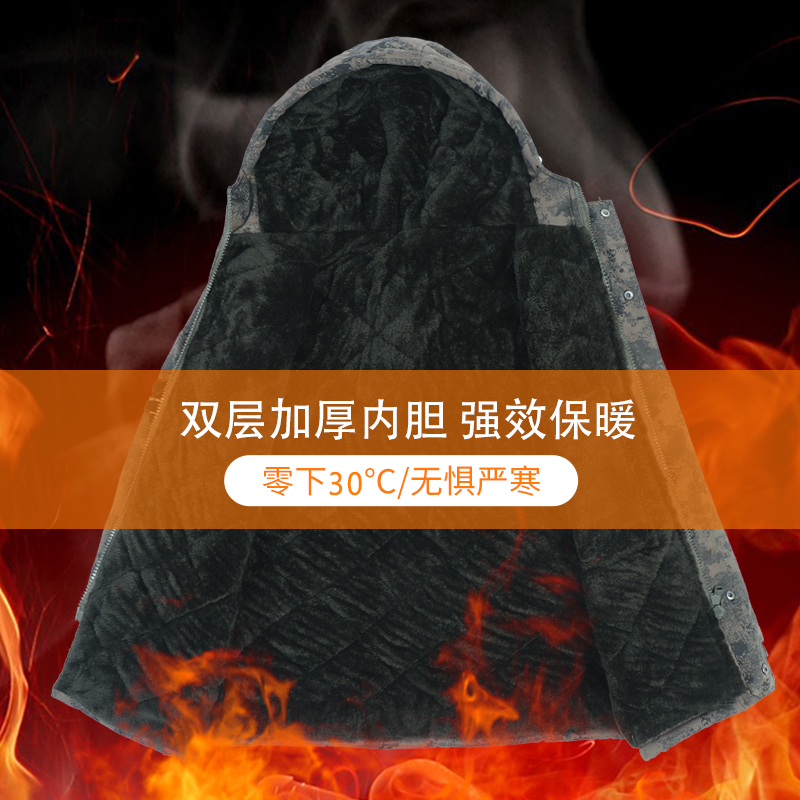 军大衣冬季加绒加厚迷彩棉服男款棉衣外套劳保棉袄冷库防寒工作服