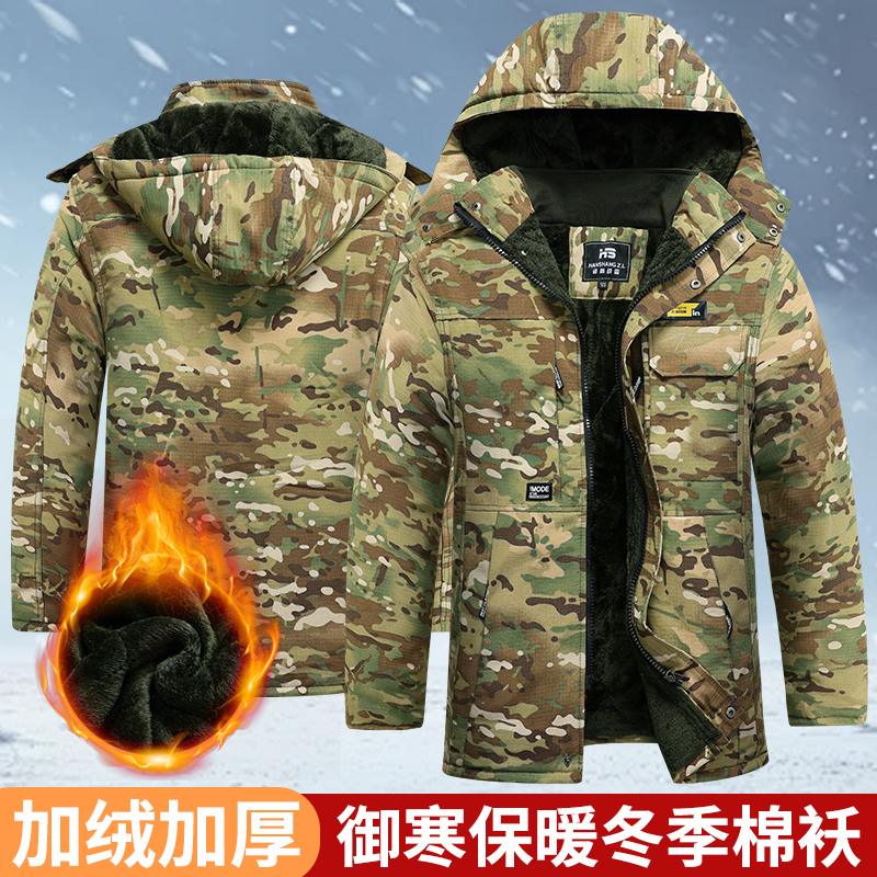 冬季迷彩棉衣男加绒加厚棉袄工作服冷库防寒服耐磨劳保服户外棉服