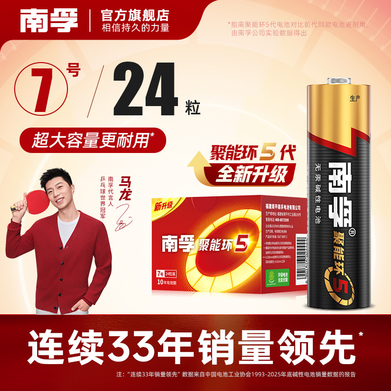 南孚电池聚能环5代7号5号碱性电池七号五号玩具电池遥控器鼠标干电池24粒正品空调电视话筒汽车挂闹钟1.5V
