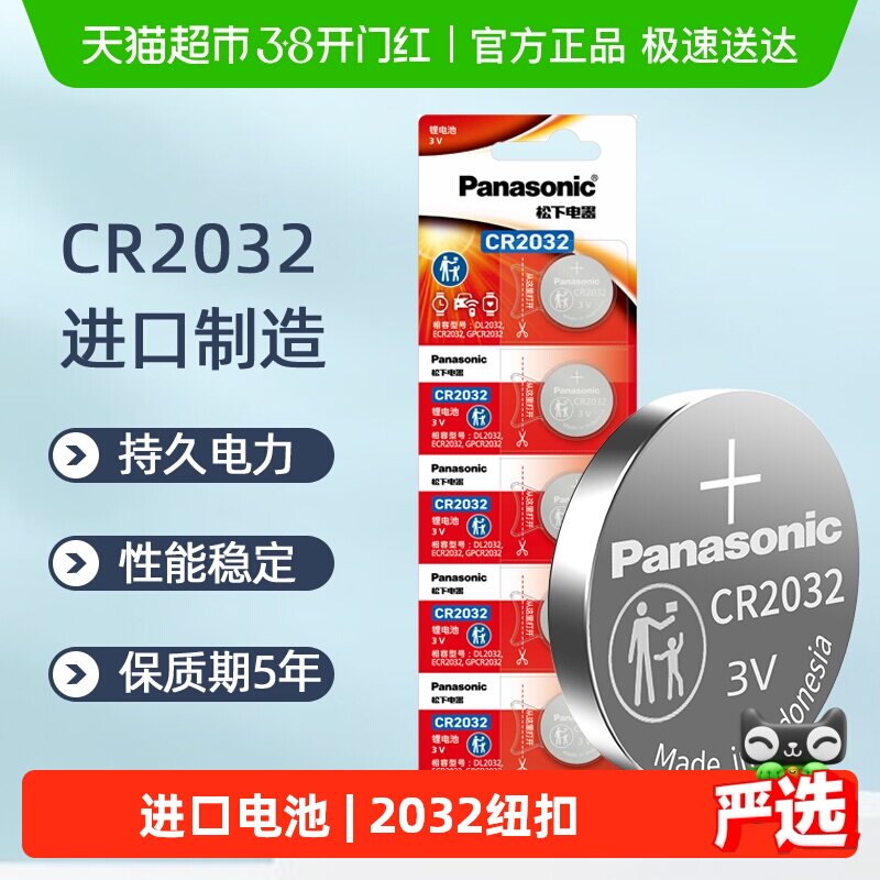 进口松下CR2032纽扣锂电池3V电子秤汽车钥匙遥控器主板机顶盒5粒