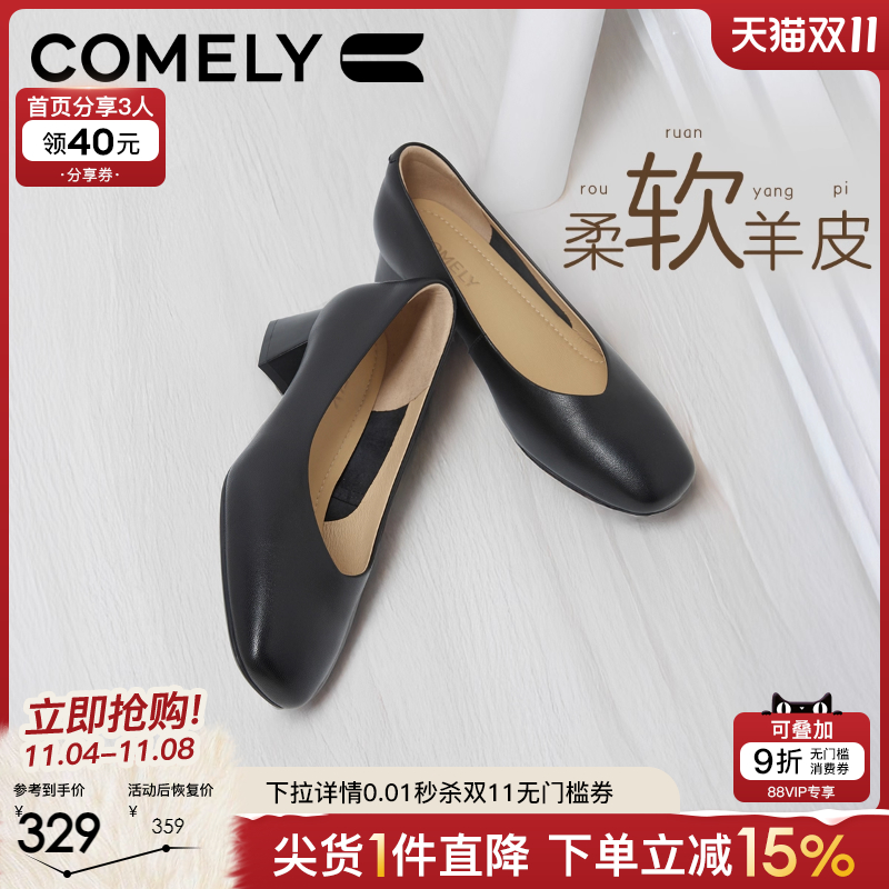 康莉单鞋女粗跟春秋新款商场同款羊皮舒适低跟方扣通勤温柔工作鞋
