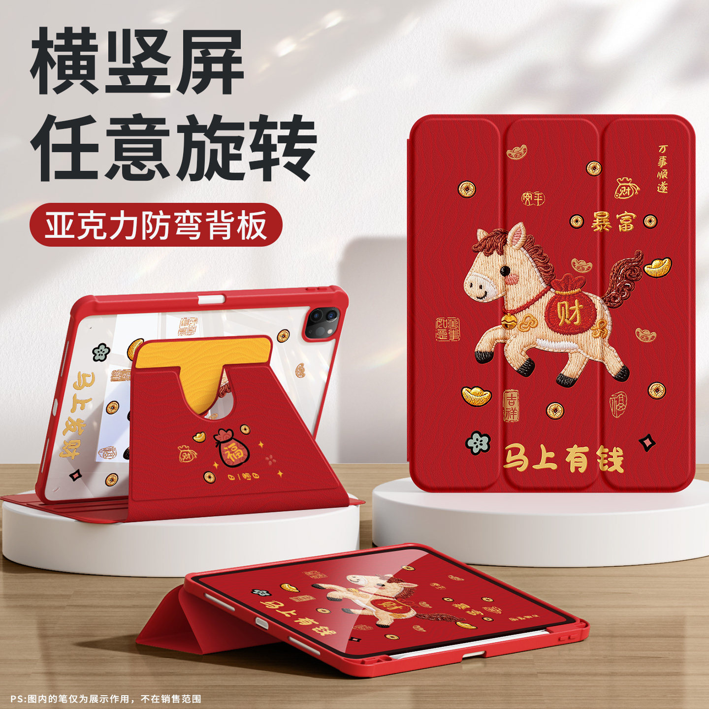 适用ipad11保护壳2025新款ipad10/9代保护套air4/5/3苹果a16马上有钱pro11带笔槽mini6防摔7可爱10.9亚克力红