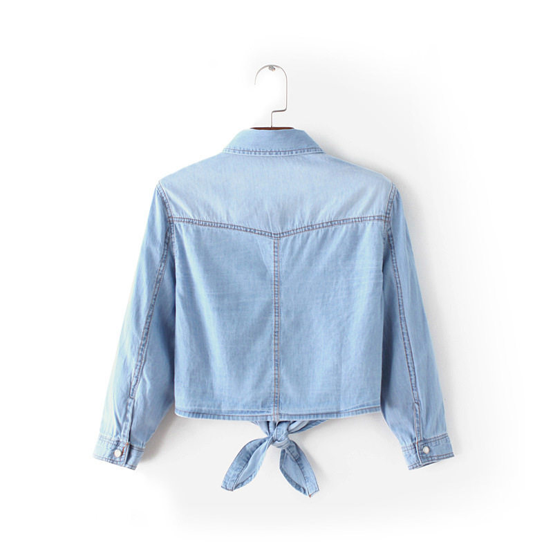 2026 women clothes系带打结中袖小披肩牛仔衬衫女 韩版 女士短外