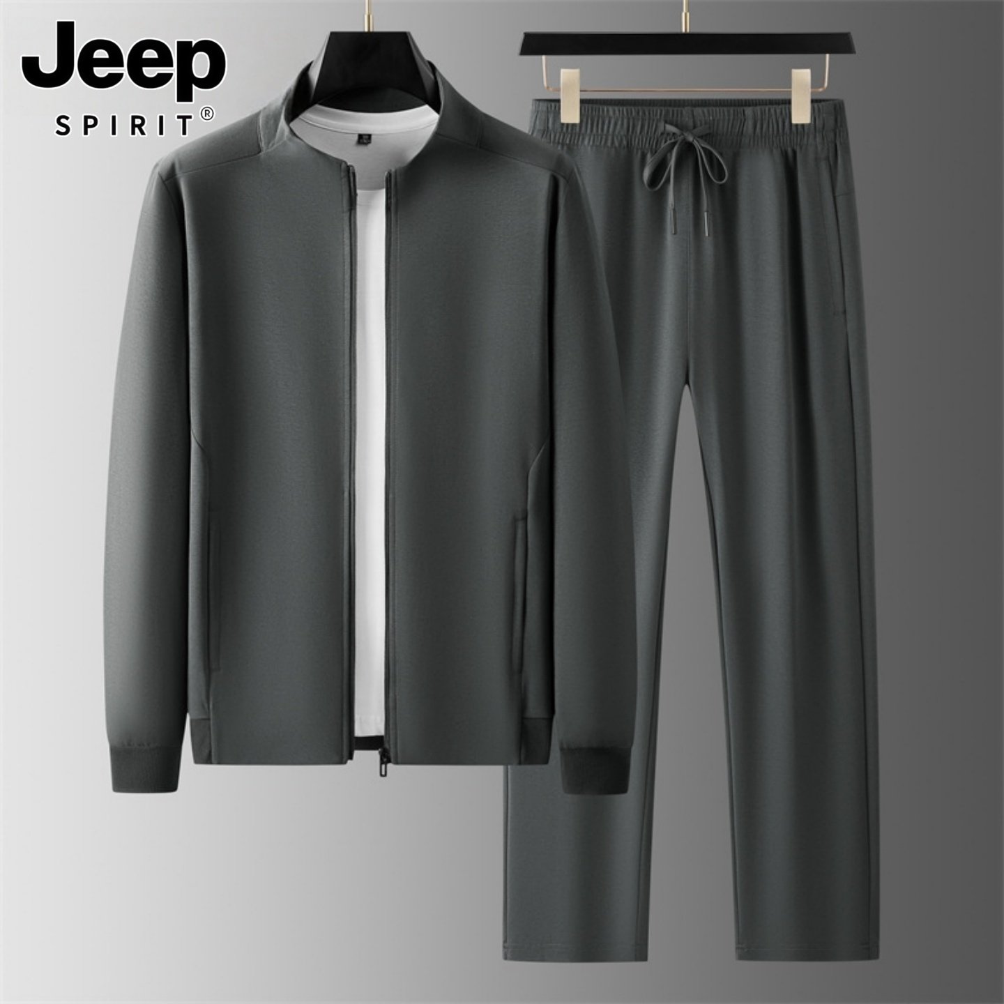 吉普运动套装男士春秋款中年爸爸男装春季跑步休闲运动服两件套男