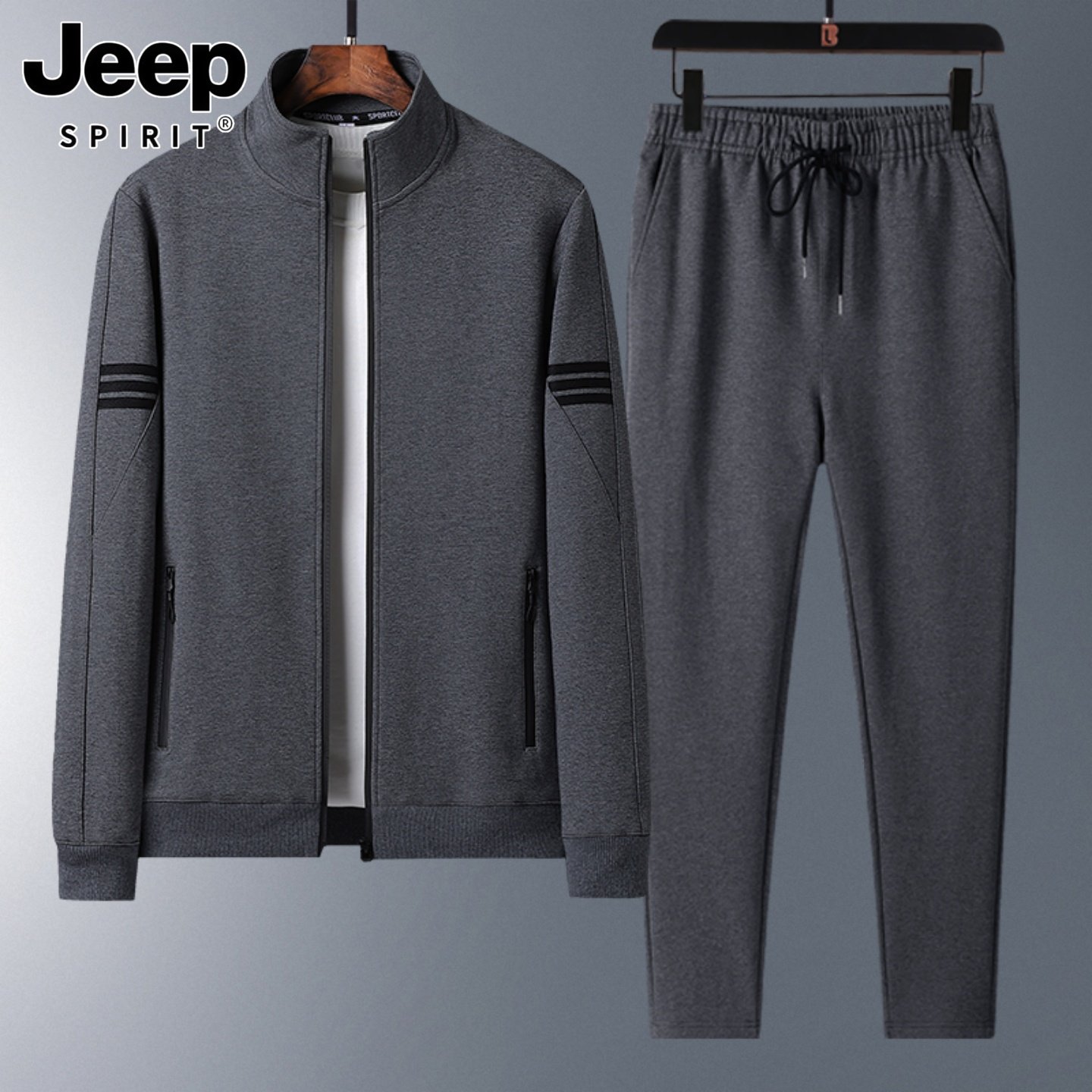 吉普春秋中老年运动套装男士中年爸爸跑步冬季加绒加厚休闲运动服
