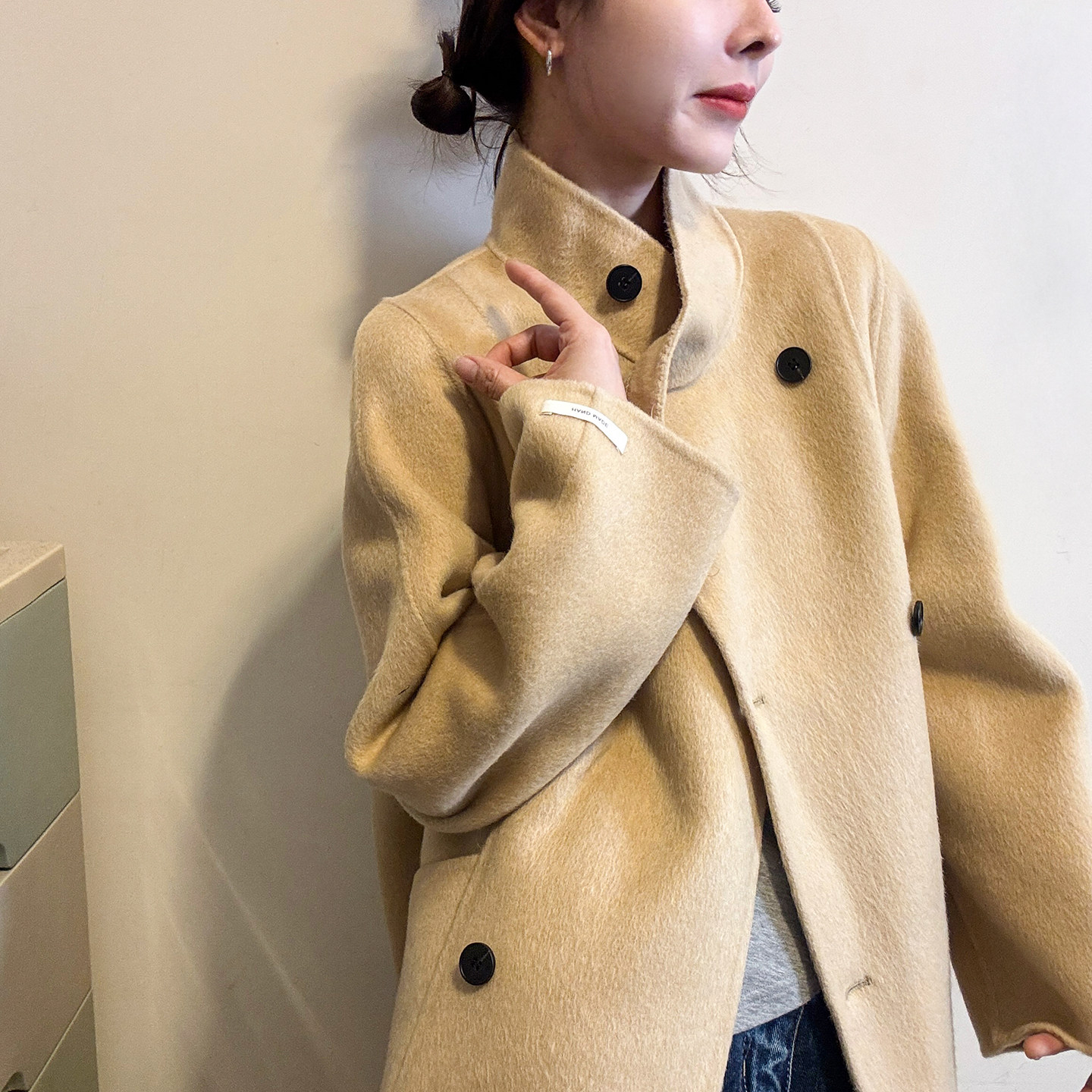 双排扣立领双面羊绒大衣女欧洲站2025冬装新款欧货女装毛呢外套潮
