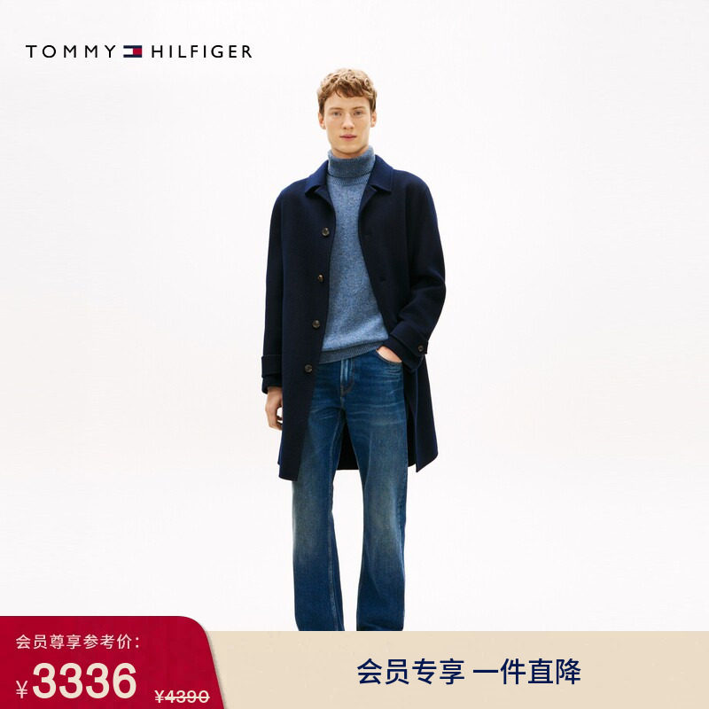 Tommy秋冬男装羊毛羊绒混纺商务绅士休闲翻领中长款宽松大衣外套