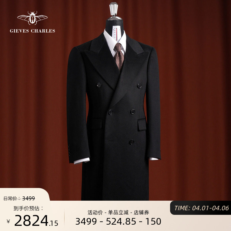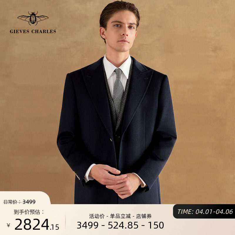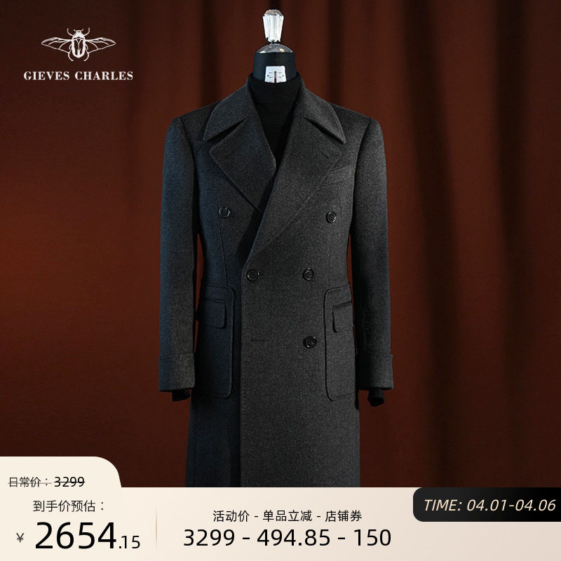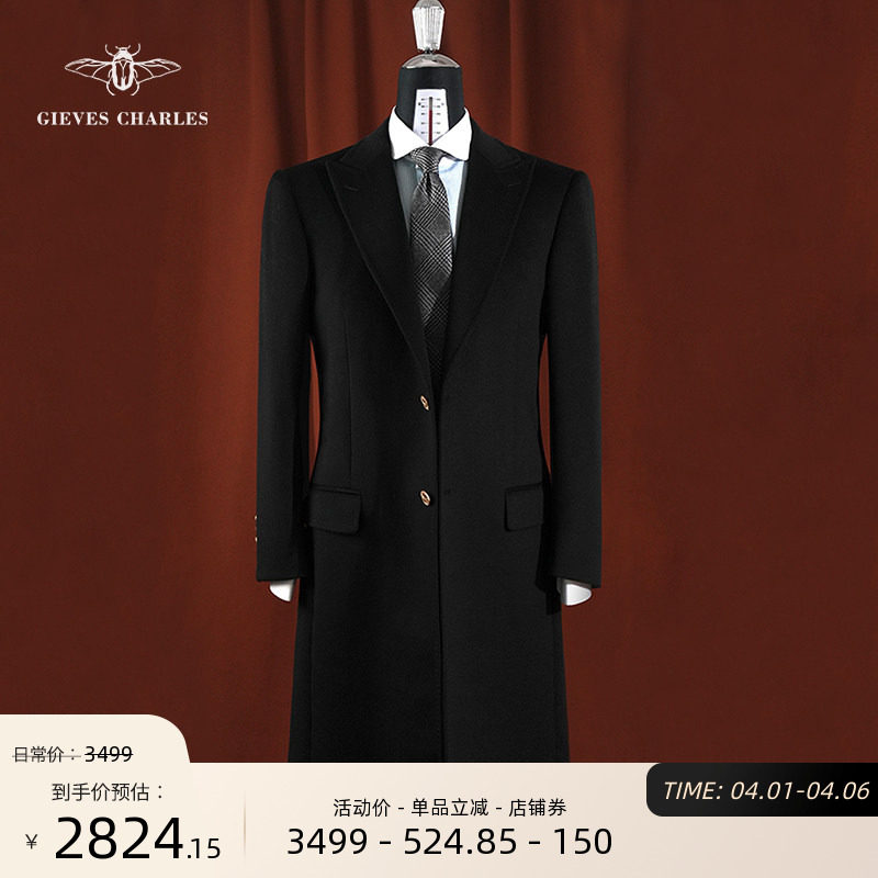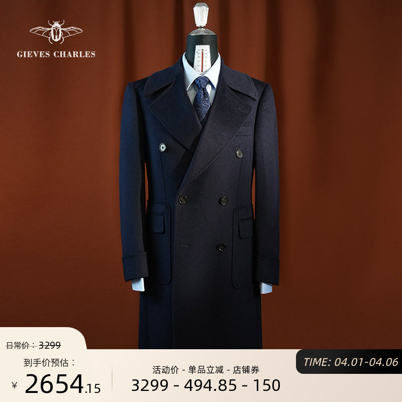 【官方正品】男士100%纯山羊绒大衣双面呢大衣中长款外套商务休闲