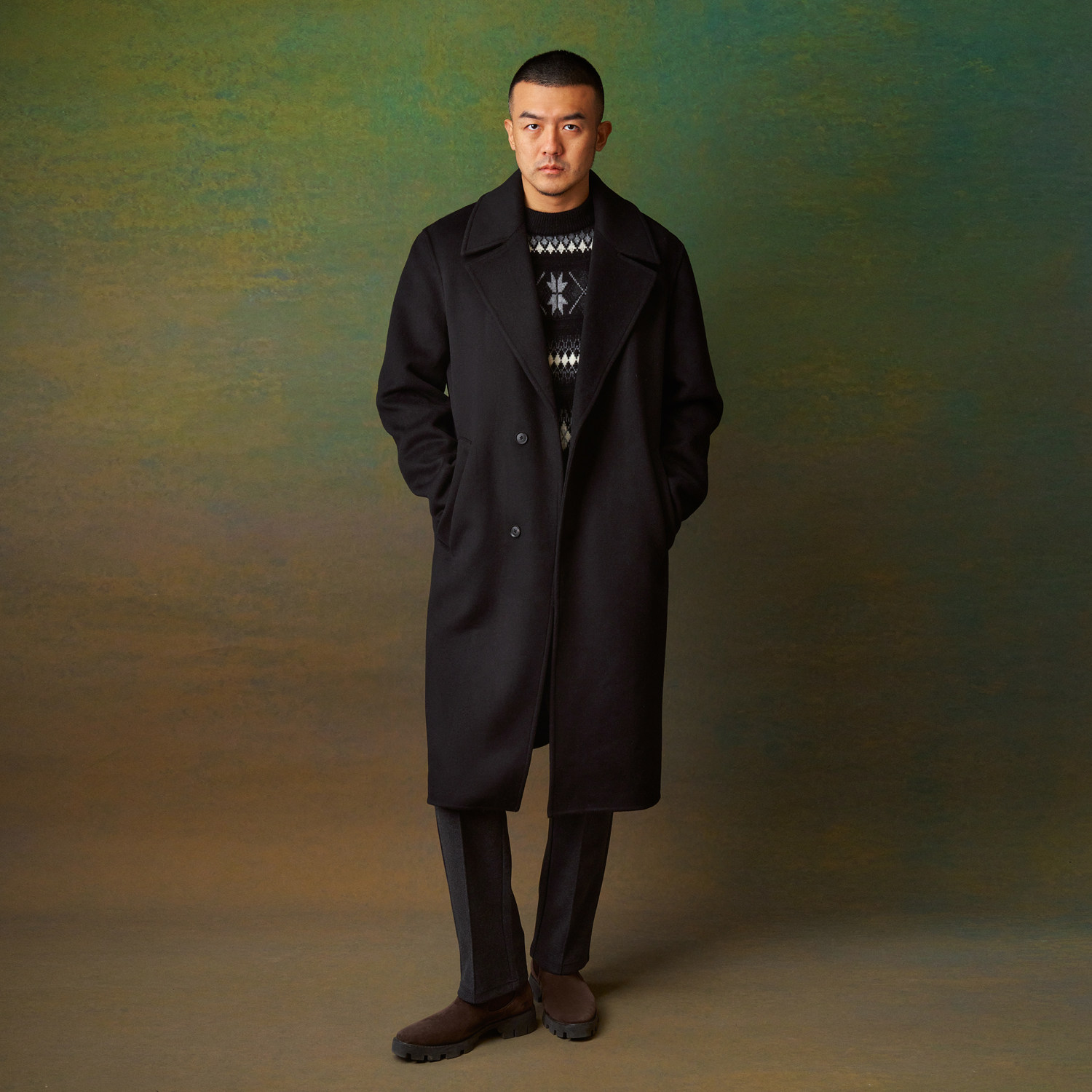 海军大衣外套男士宽松秋冬羊绒羊毛黑色过膝中长款AllenXie艾伦谢