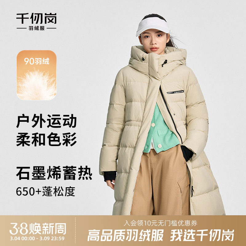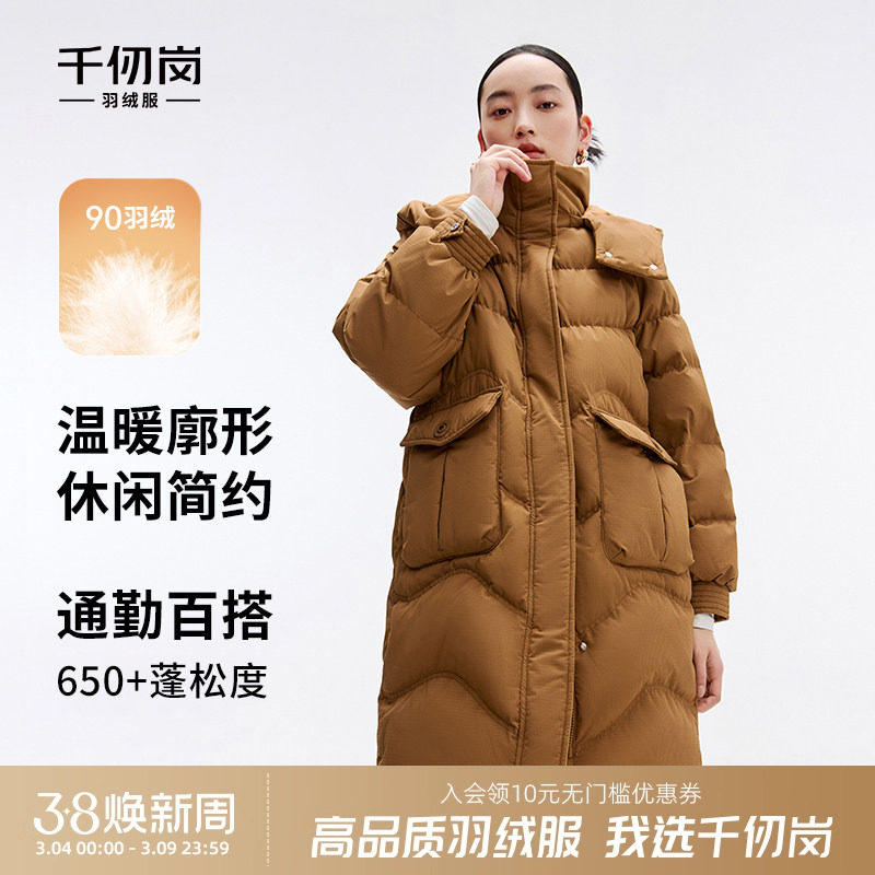 千仞岗冬季中长款羽绒服通勤休闲纯色宽松显瘦加厚保暖大衣外套女