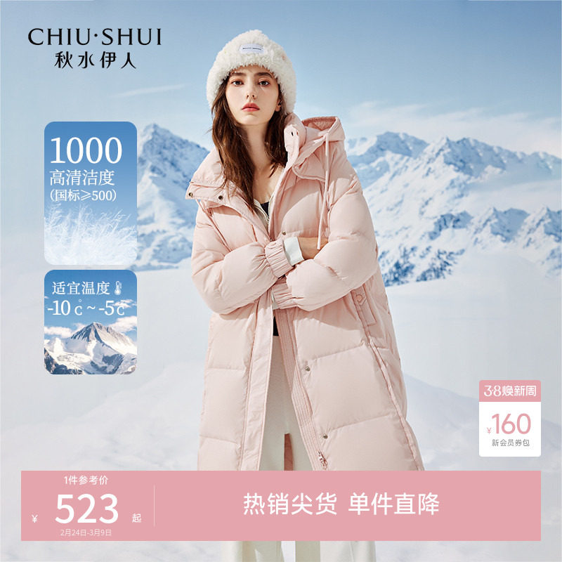 秋水伊人羽绒服女中长款2025秋冬新款女装小个子加厚粉色外套大衣