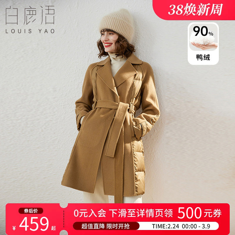 高级感羊毛羽绒外套女中长款小个子轻熟风系带收腰立领正肩呢大衣