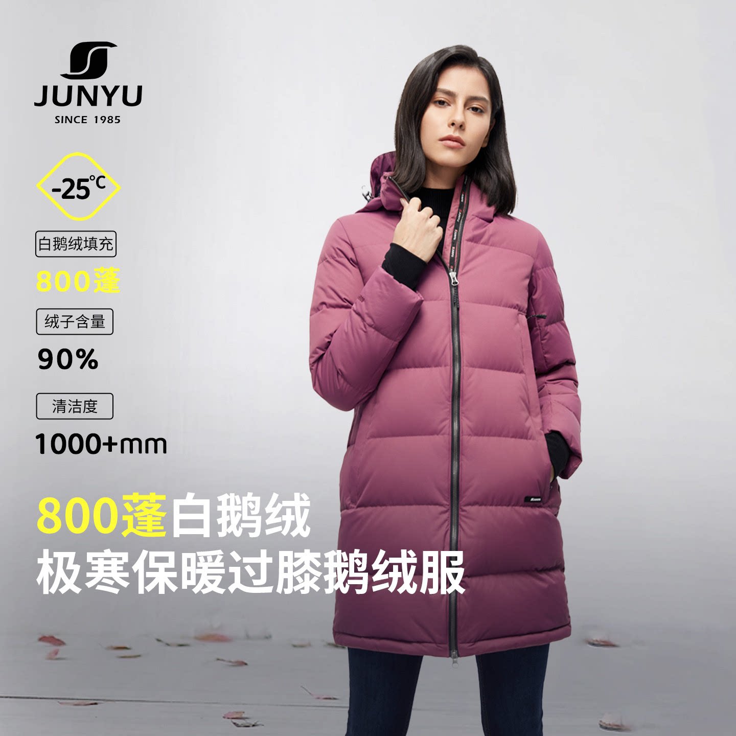 君羽女中长款鹅绒羽绒服800蓬白鹅绒冬季加厚时尚羽绒大衣52158