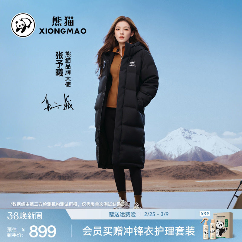 张予曦同款熊猫高蓬羽绒服中长款过膝女90鸭绒防泼水外套大衣冬