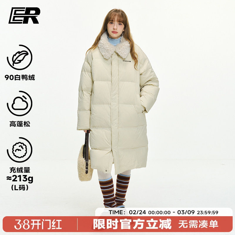 FDR官方店 中长款毛领大衣座山雕外套工装派克服式羽绒服女款冬季