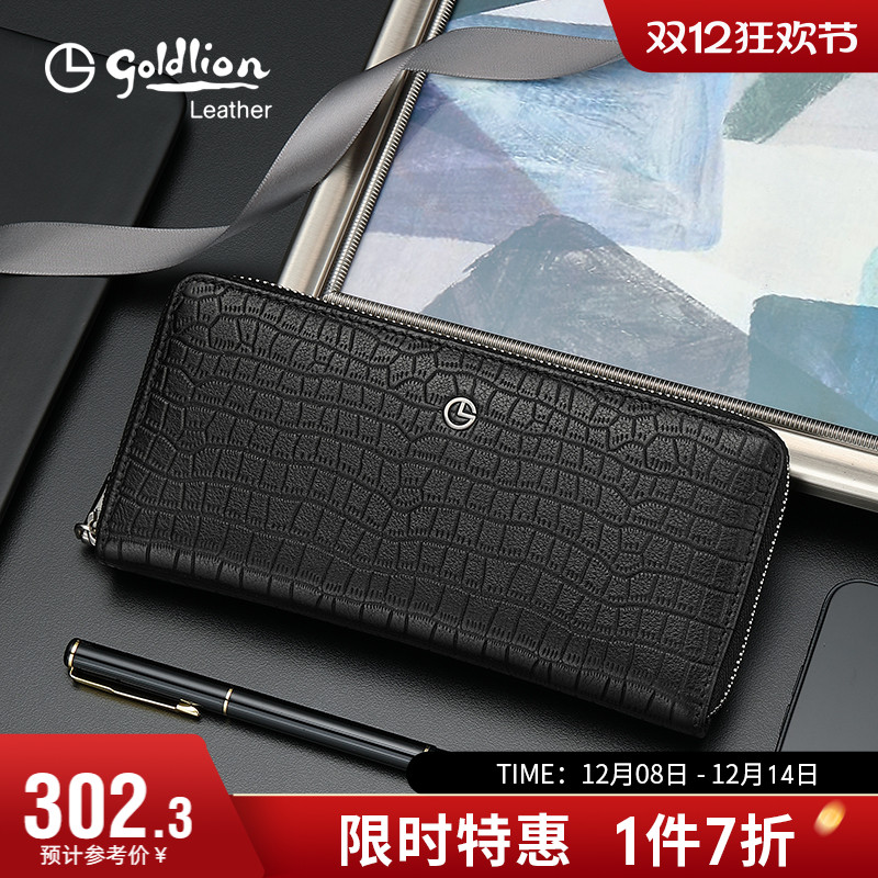 金利来新款钱包男士长款真皮时尚商务手拿包鳄鱼纹牛皮青年手抓包