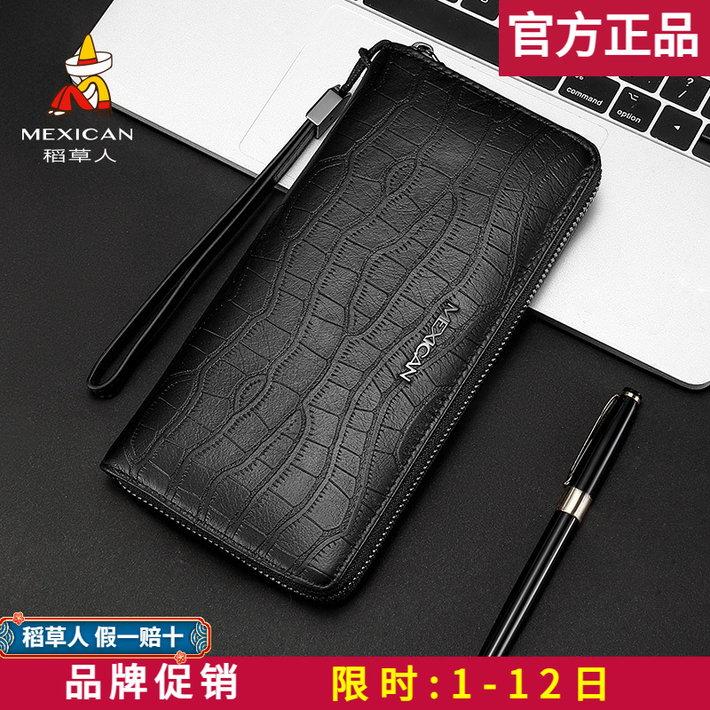 稻草人手包男真皮大容量休闲商务手抓包卡包长款拉链头层牛皮钱包