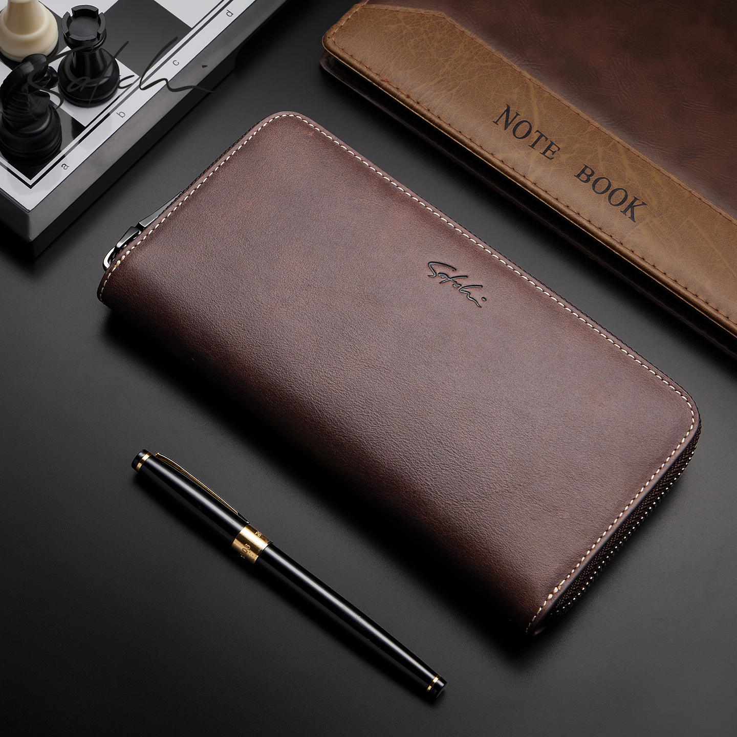 商务手包男真皮大容量高档长款钱包头层牛皮拉链新款多功能手拿包