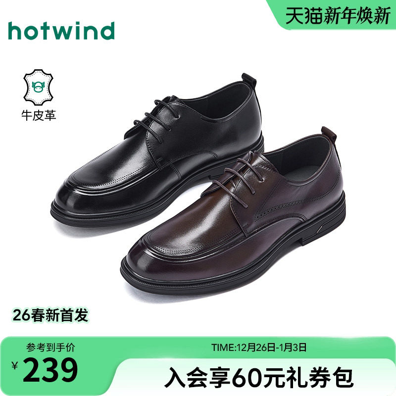 热风男鞋2026年春季新款男士商务正装皮鞋英伦风德比鞋男款新郎鞋