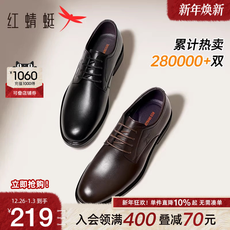 红蜻蜓男鞋韩版真皮商务正装男士皮鞋休闲英伦婚鞋透气软底德比鞋
