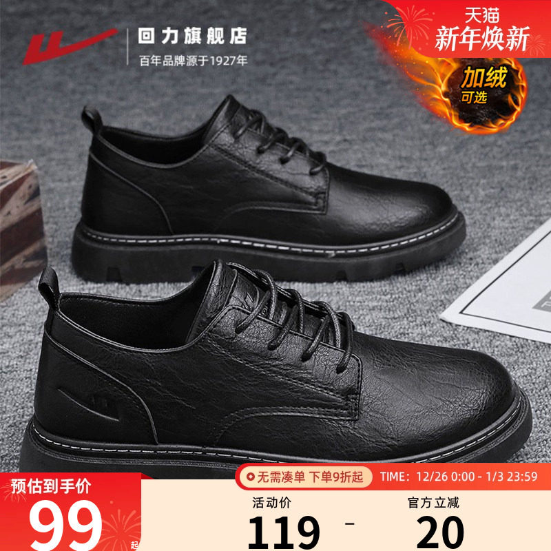 回力皮鞋男秋冬新款商务正装男鞋休闲鞋英伦风马丁靴男新郎德比鞋