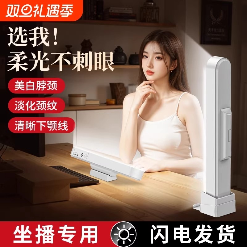 直播美颜下巴补光灯主播专用颈纹灯美白亮肤面部网红嫩肤双排打光灯脸部桌面长条灯棒柔光拍摄支架拍照便携