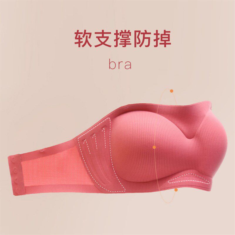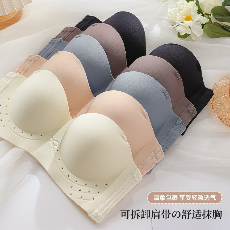 无痕一片式薄款可拆卸肩带抹胸式上托裸感内衣女文胸大胸显小胸罩