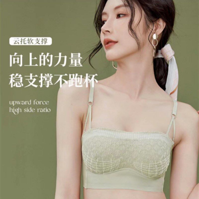 无痕蕾丝杯面内衣女小胸聚拢显大上托舒适防滑抹胸可拆卸肩带文胸
