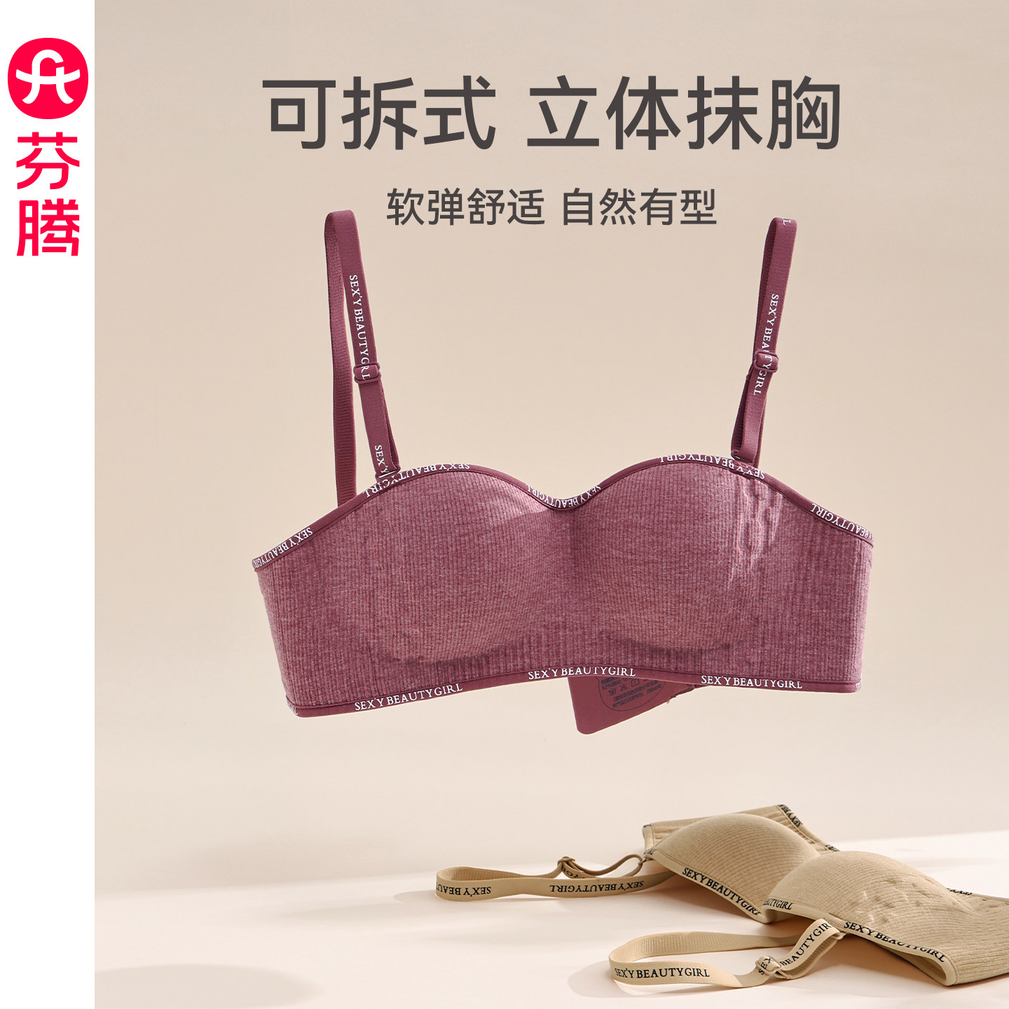 芬腾女士抹胸内衣小胸聚拢无钢圈一片式文胸可拆卸肩带防下滑胸罩