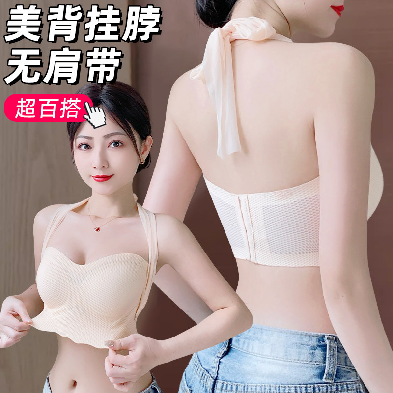 挂脖肤色美背内衣女大胸显小2024新款爆款大码无痕可拆卸肩带文胸