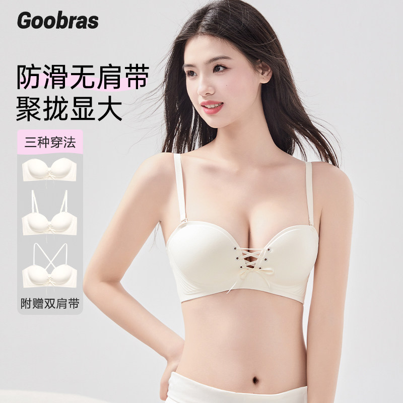 Goobras聚拢无肩带内衣防滑抹胸可拆卸无痕性感美背小胸显大文胸