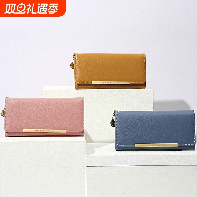 钱包女新款防盗刷长款pu两折超薄款简约时尚信用卡拉链搭扣手拿包
