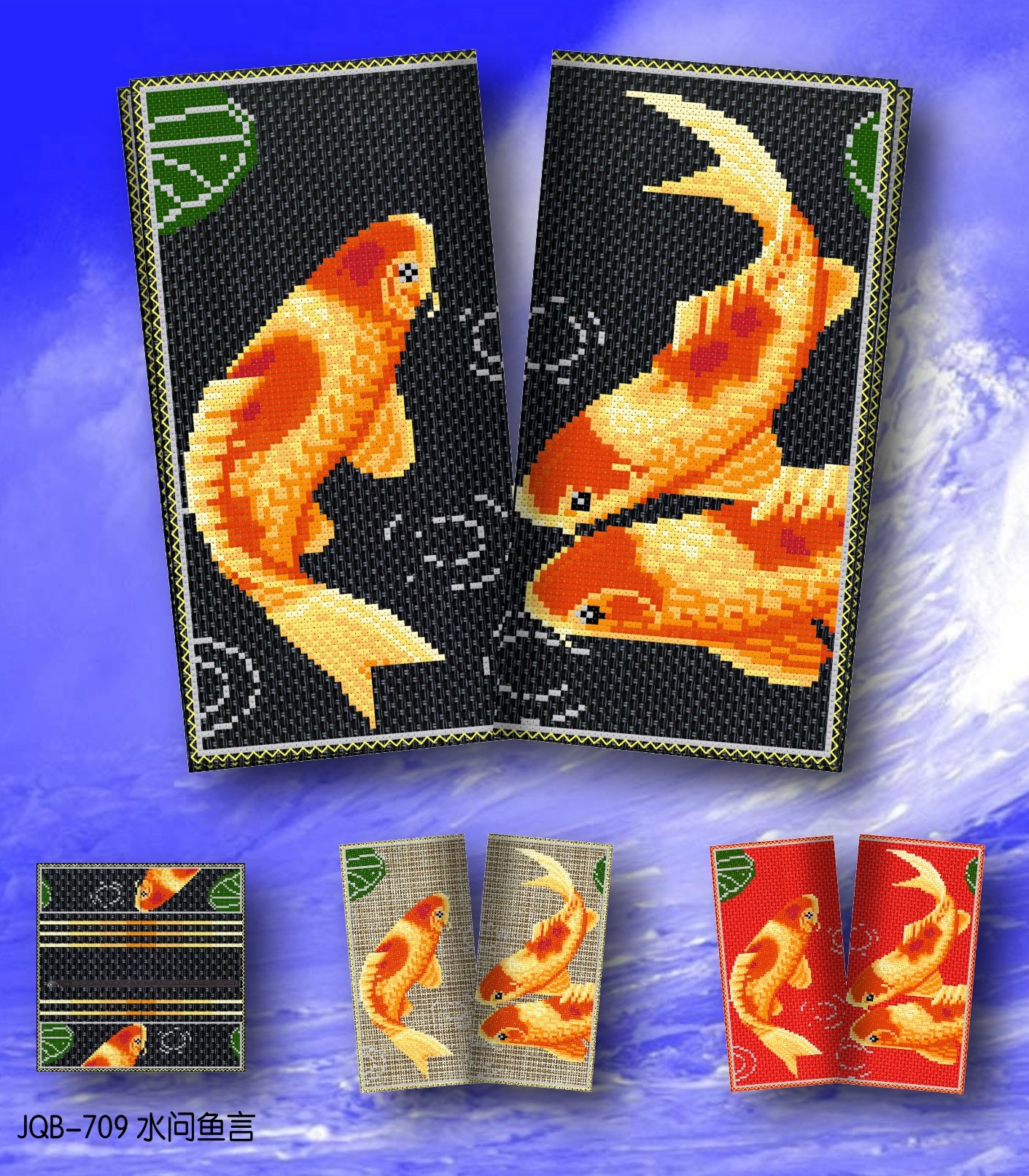 包邮新款水晶丝线十字绣钱包女士两折长款水问鱼言非成品钱包钱夹